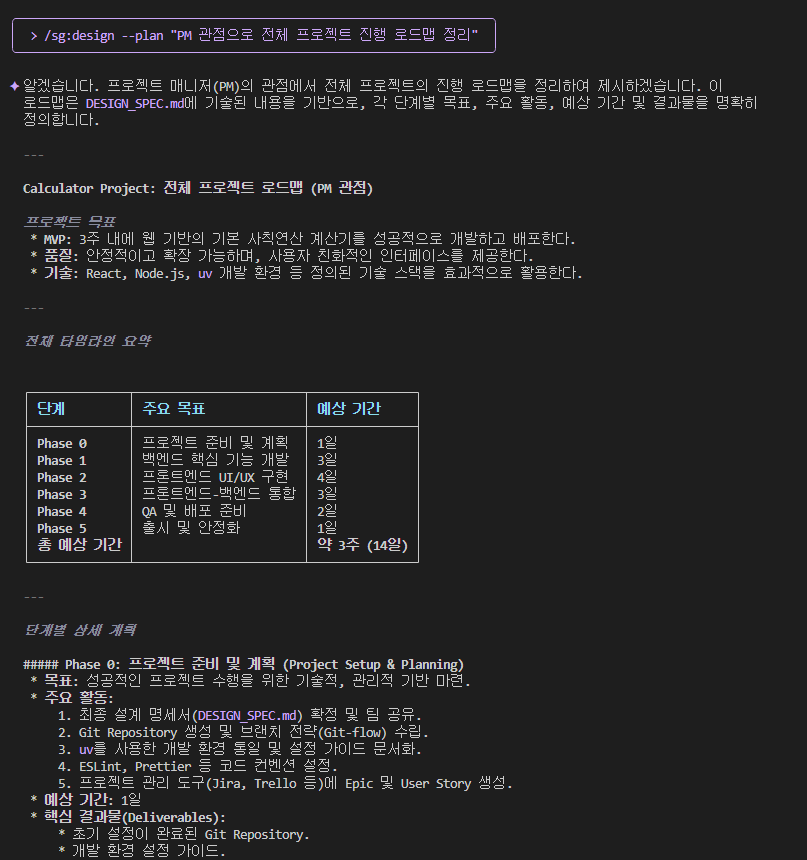/sg:design --plan "PM 관점으로 전체 프로젝트 진행 로드맵 정리"