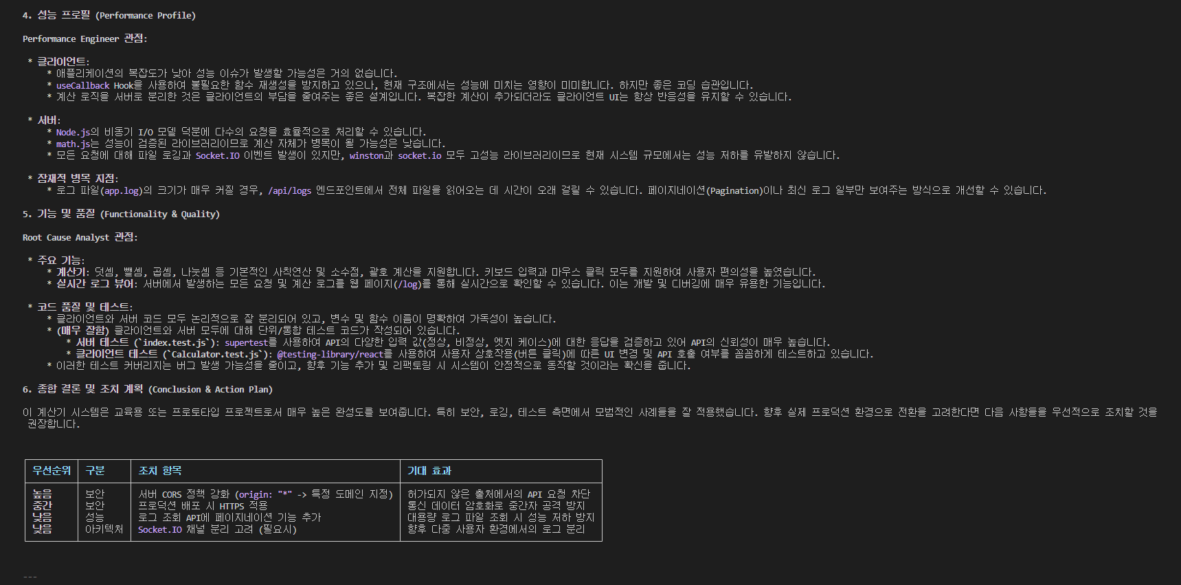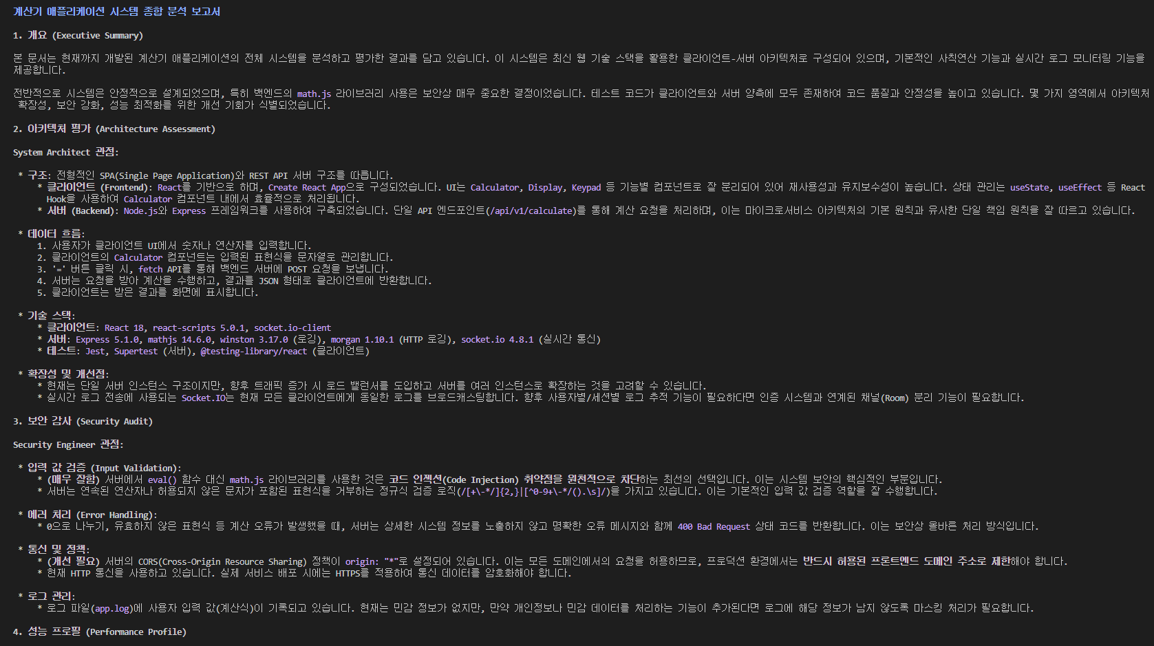 현재 개발된 애플리케이션의 종합 보고서 요청하여 받은 결과