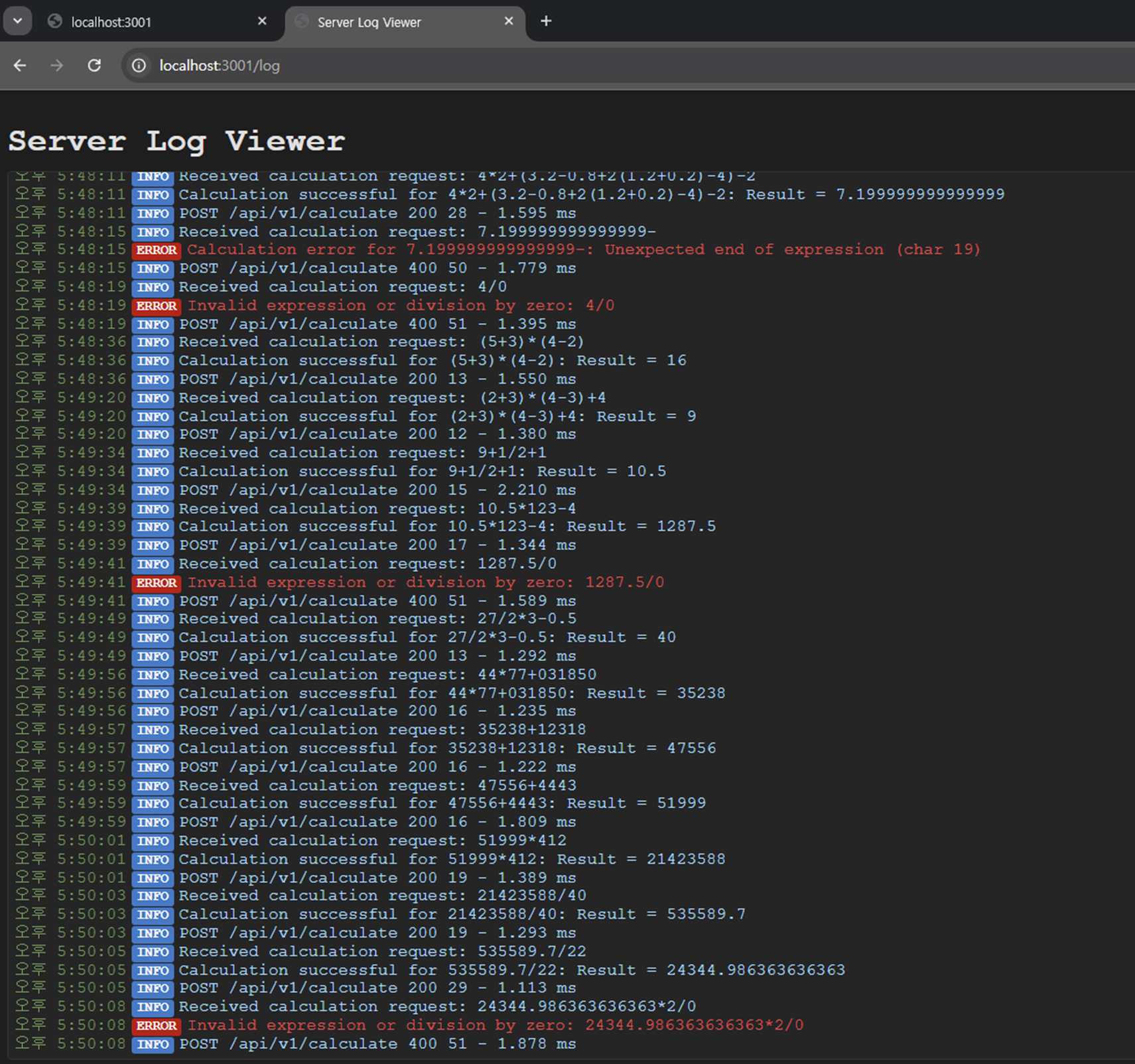 서버 로그를 파일로 남기도록 추가했고 로그를 볼 수 있는 페이지도 요청하여 개발되었다.