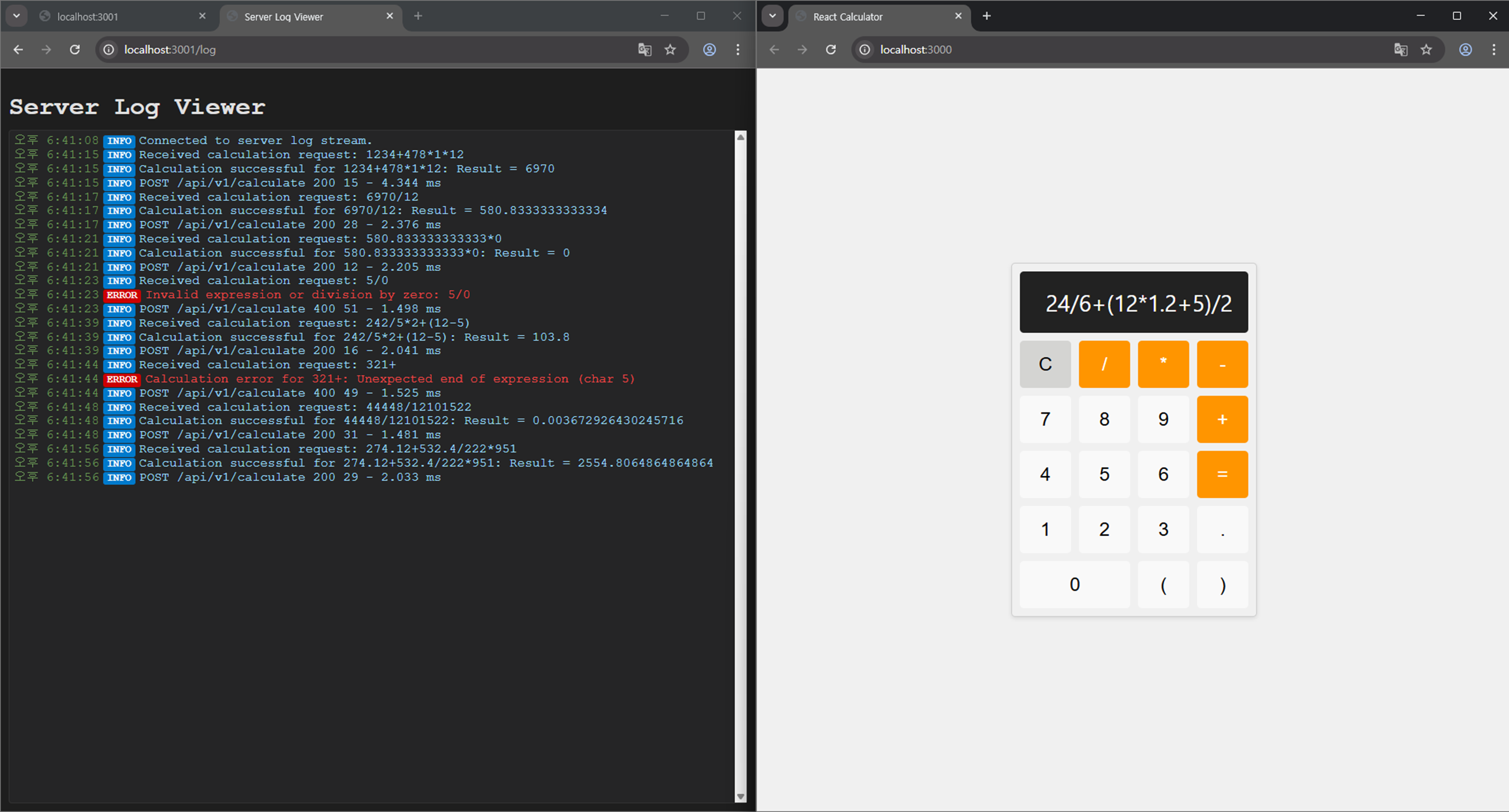 아래와 같이 서버와 클라이언트 실행되고 API를 통해 계산을 요청하고 결과를 받는다.