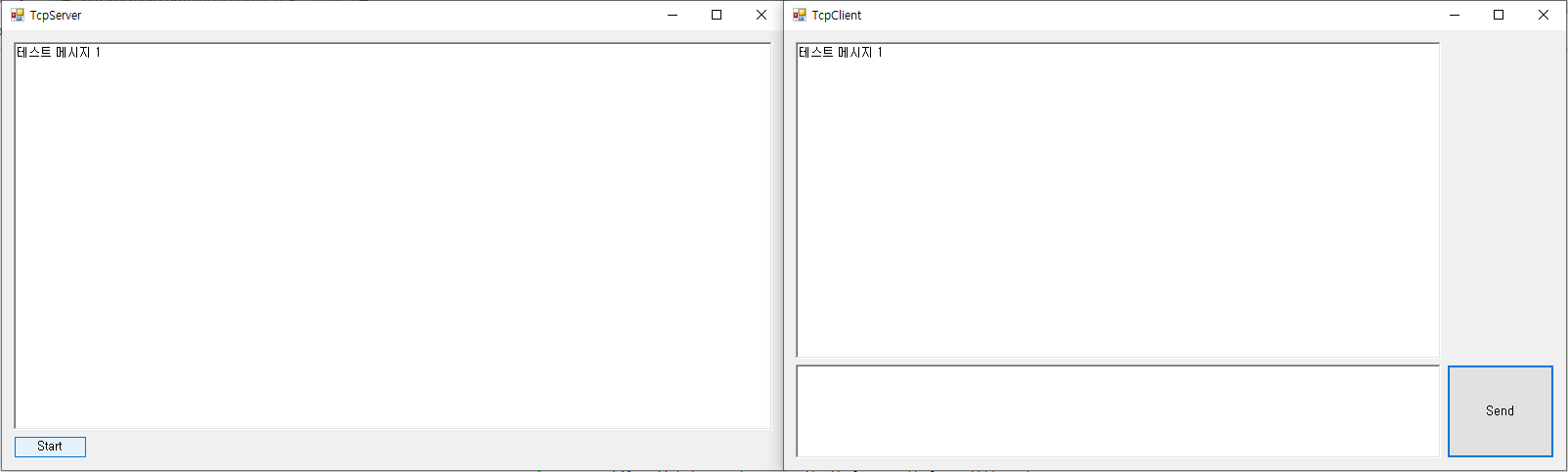 클라이언트에서 메시지를 보내고 서버에서 메시지를 기록 후 클라이언트로 다시 보내주는 예제 (Winform)